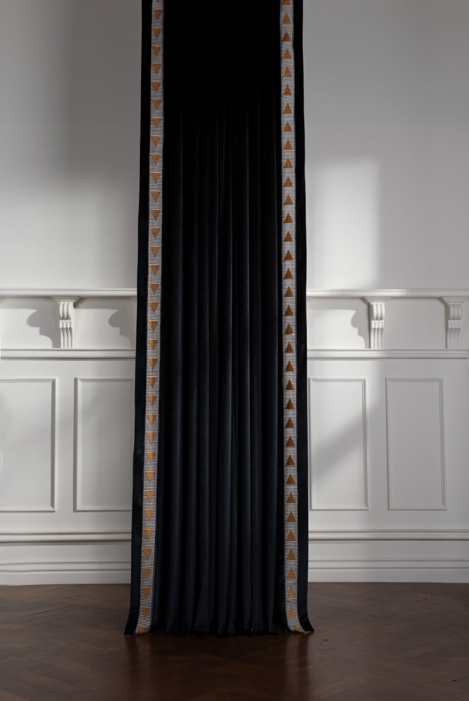 Bej ve siyahın kontrast uyumunu zarif bir bordür detayıyla buluşturan ABUS, modern ve klasik dekorasyonlarda şık bir odak noktası oluşturur.